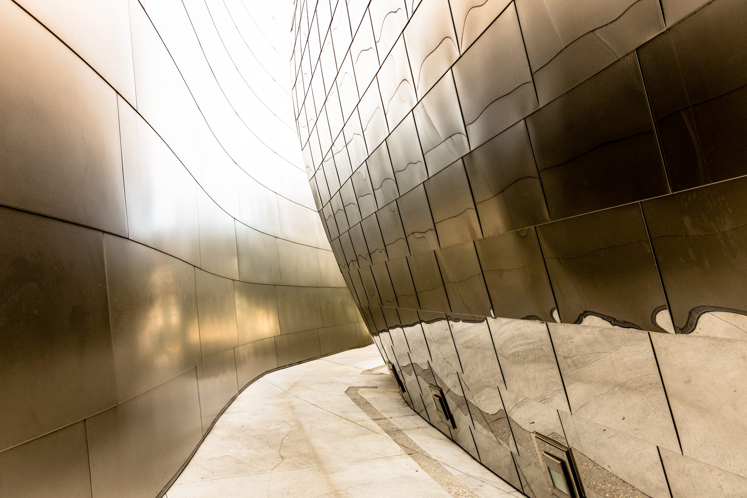 The complex form of the Founder’s Room created a construction challenge. CMF custom fabricated over 4,000 highly polished stainless steel panels on site and installed each in its specified position.